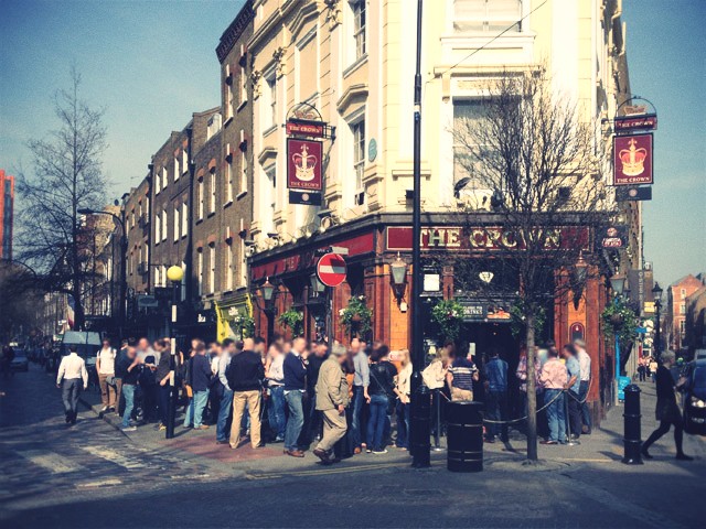 PUBの店外の人だかりがいつも以上に多いように見受けられます。